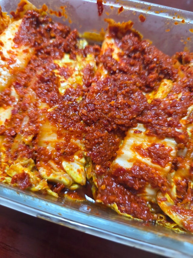 매운김치라 유명해서 구매해봤는데 제입에는 약간 간간하네요 그래도 매콤하니 매력있어요 양념 넉넉해서 채소있는거 버무려먹기도 좋았어요